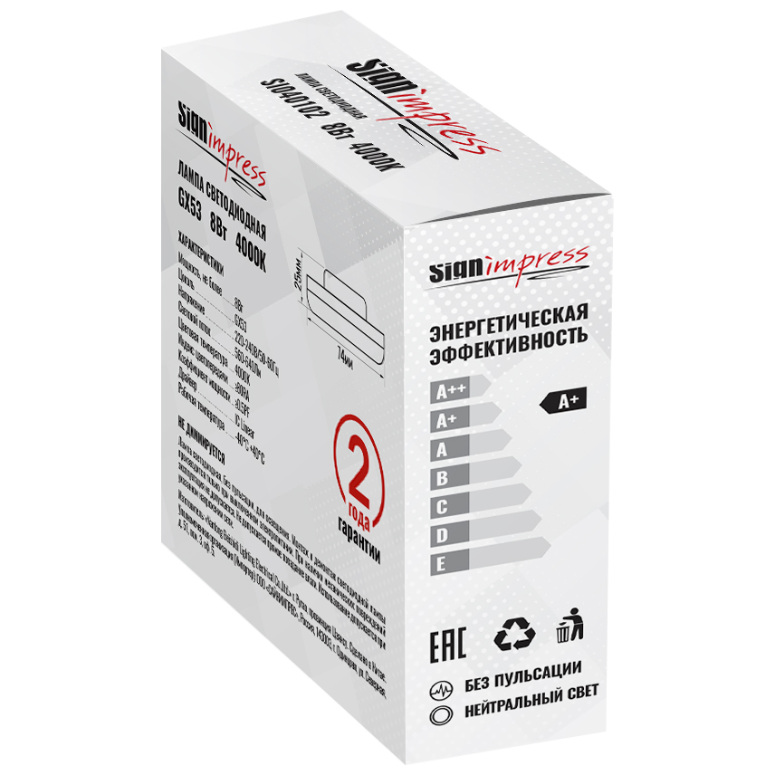 Лампа светодиодная GX53 8Вт 4000К L IC SignImpress предназначена для использования со встраиваемым светильником типа GX53, который устанавливается в натяжных и подвесных потолках. Комплектация: Лампа светодиодная – 1 шт.; Паспорт изделия и руководство по эксплуатации – 1 шт.; Индивидуальная упаковка с характеристиками – 1 шт. Гарантия 2 года.
