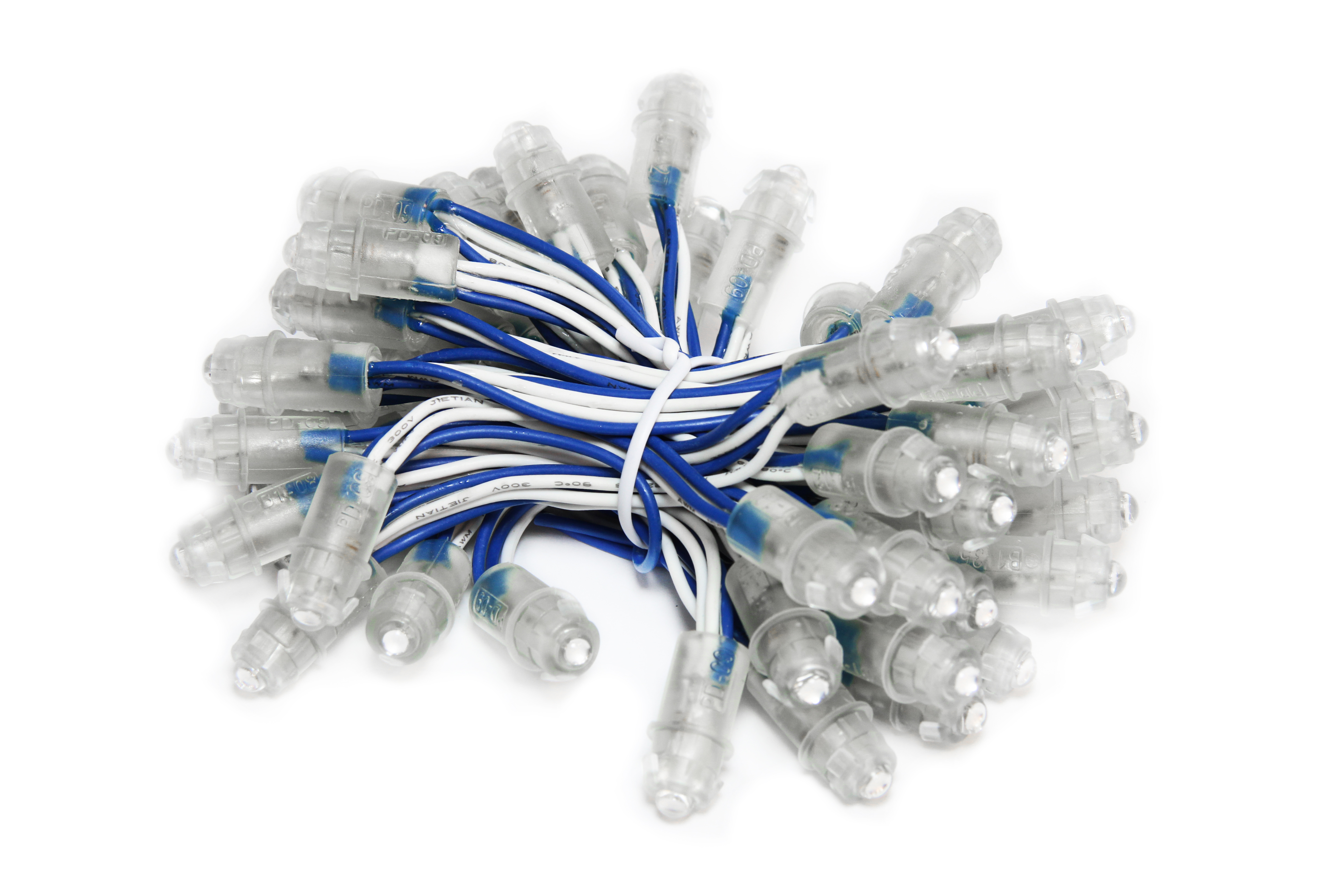 Светодиодные пиксели PD-9 применяются в изготовлении уличной световой рекламы, световых вывесок и декорировании изделий. Пиксели имеют влагозащищенный корпус и заполнены водонепроницаемым силиконом. Имеют фиксаторы для установки в перфорированные изделия. Пиксели поставляются в виде гирлянд по 50шт. с шагом между диодами 6 см.