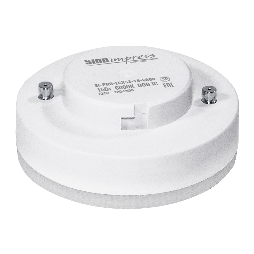 Лампа светодиодная GX53 PRO 15Вт 6000К SignImpress используется для освещения жилых и общественных помещений.