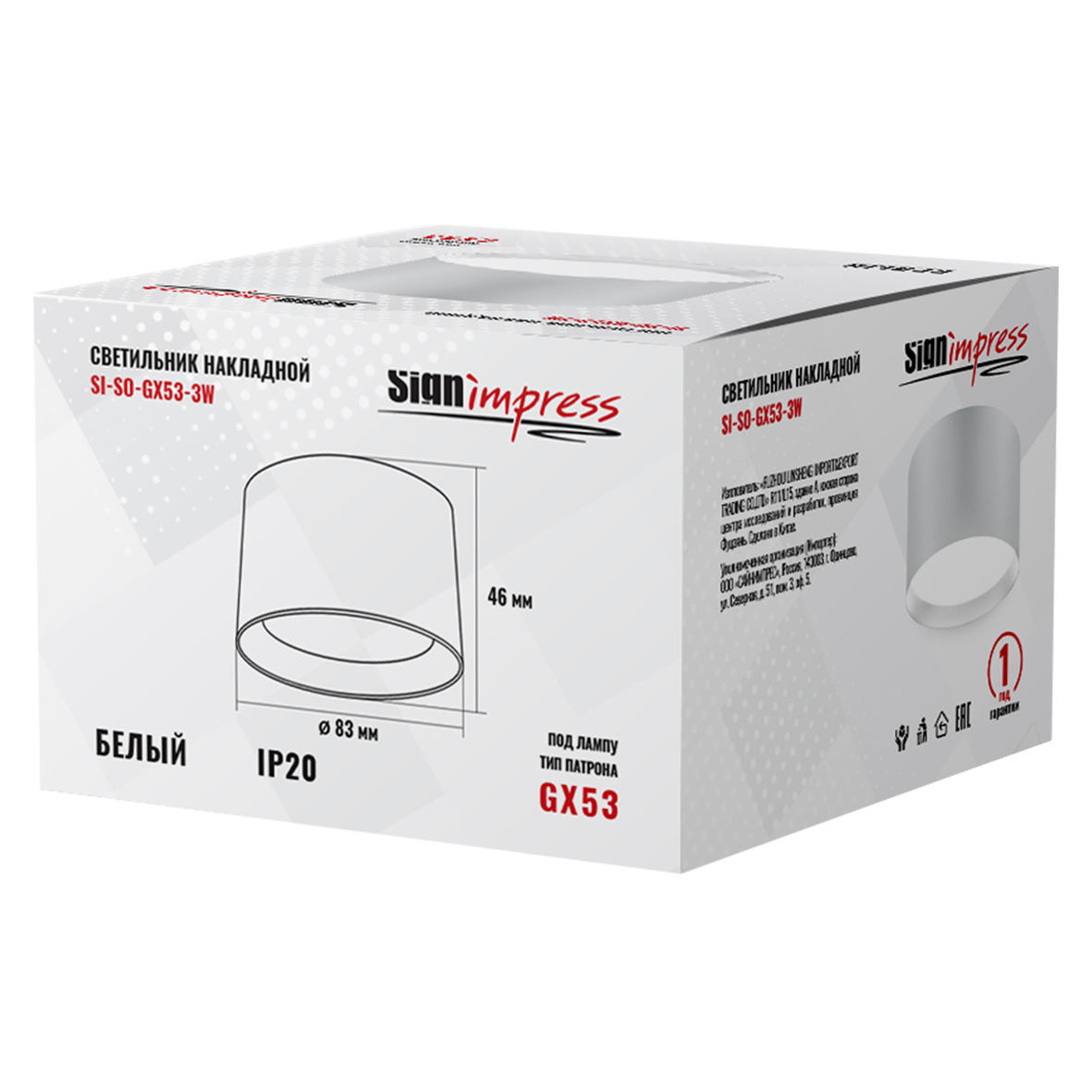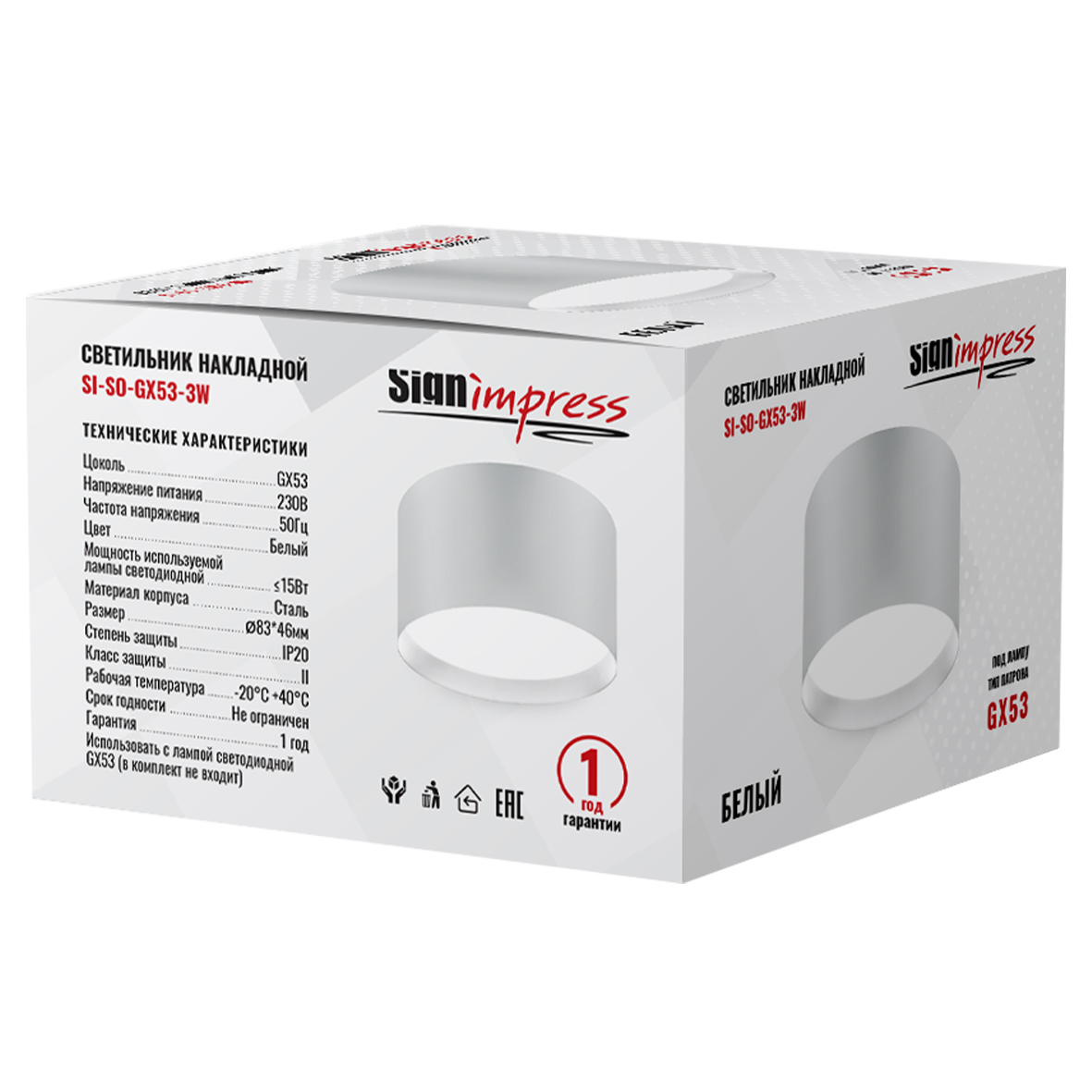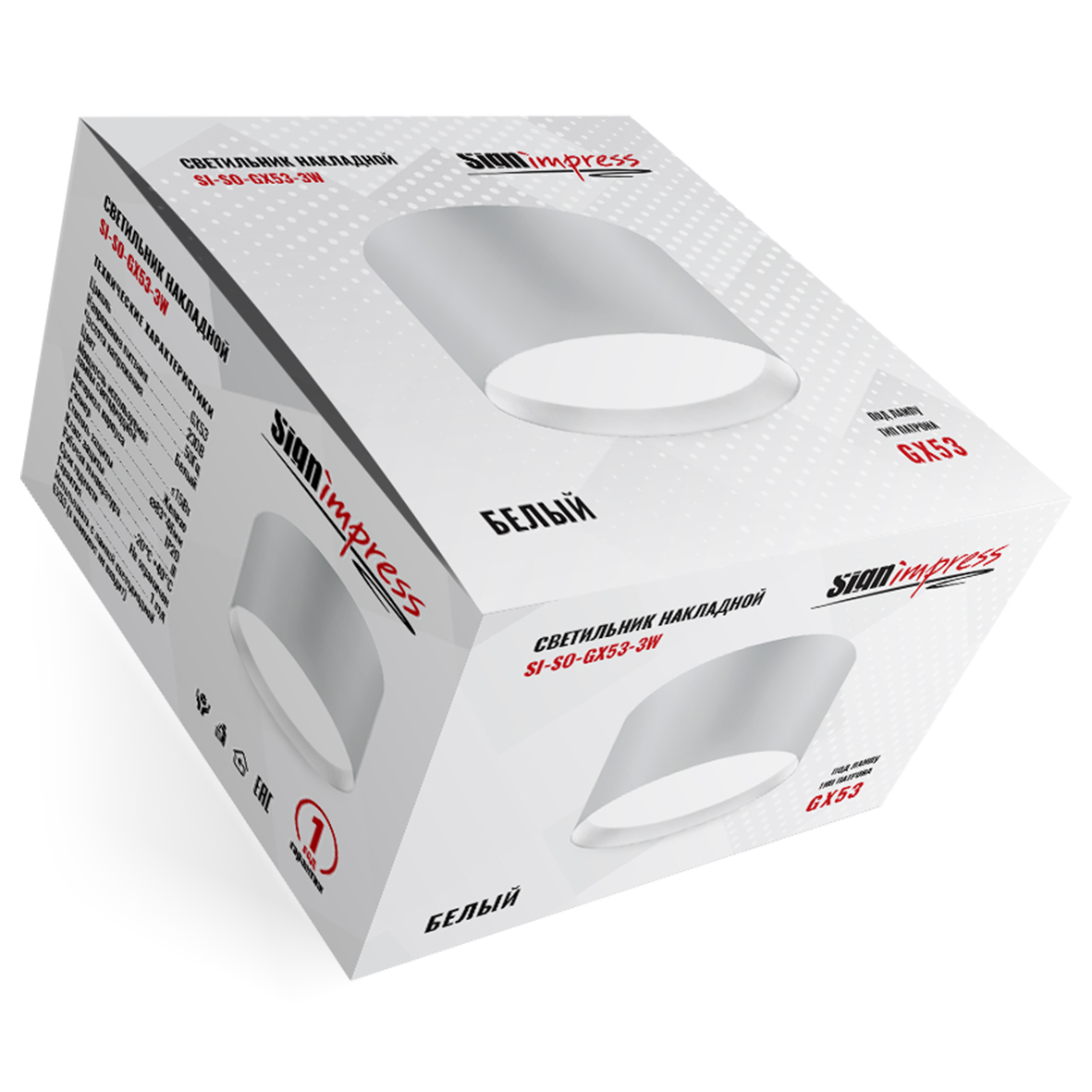 Светильник накладной под лампу GX53 SI-SO-GX53-3W Белый SignImpress предназначен для освещения жилых и общественных помещений. Используется для основного освещения или акцентного зонирования. Светильник накладной обладает современным дизайном, подойдет для любого интерьера и стиля: классика, лофт, хайтек, минимализм, модерн. Рекомендуется использовать в комплекте с лампой светодиодной марки Signimpress (лампа в комплект не входит) .Комплектация: Светильник накладной – 1 шт.; Паспорт изделия и руководство по эксплуатации – 1 шт.; Упаковка с характеристиками – 1 шт.; Дюбель – 2шт.; Саморез – 2шт. Гарантия 1 год.