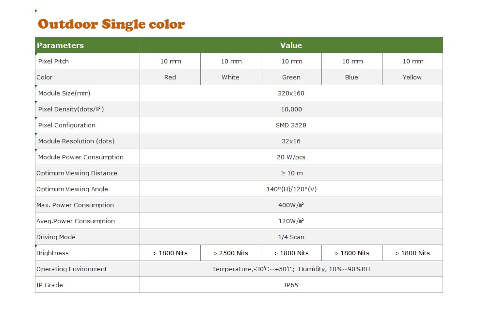 Применяются совместно с комплектующими: контроллеры, магниты или винты, профиль оцинкованный, профиль алюминиевый, уголки пластиковые или кабинеты из которых в конечном итоге собирается полноцветный экран. Завод SignImpress включает в себя полный цикл производства модулей, от инкапсуляции кристаллов в диоды, до нанесения диодов и чипов на печатную плату. Гарантия 1 год. Комплектация: 0,25 силовой кабель (power cabel); 1 кабель для передачи данных (data cabel); 4 магнитных винта (screws). 4 модуля комплектуются одним силовым кабелем.