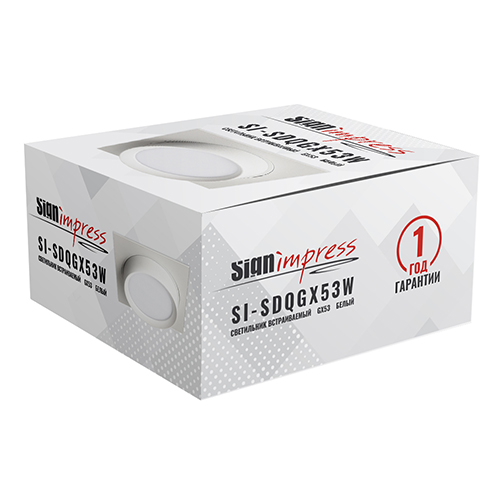 Светильник встраиваемый GX53 квадрат с накладкой Белый SignImpress Светильник встраеваемый металлический предназначен для использования со светодиодной лампой, цоколь GХ53, для освещения жилых и общещественных помещений.Подходит для подвесных конструкций. Рекомендуется использовать в комплекте с лампой светодиодной марки SignImpress. Светильник встраеваемый не содержат ртутьсодержащихся веществ, поэтому он не представляет опастности в случае выхода из строя или разрушения.