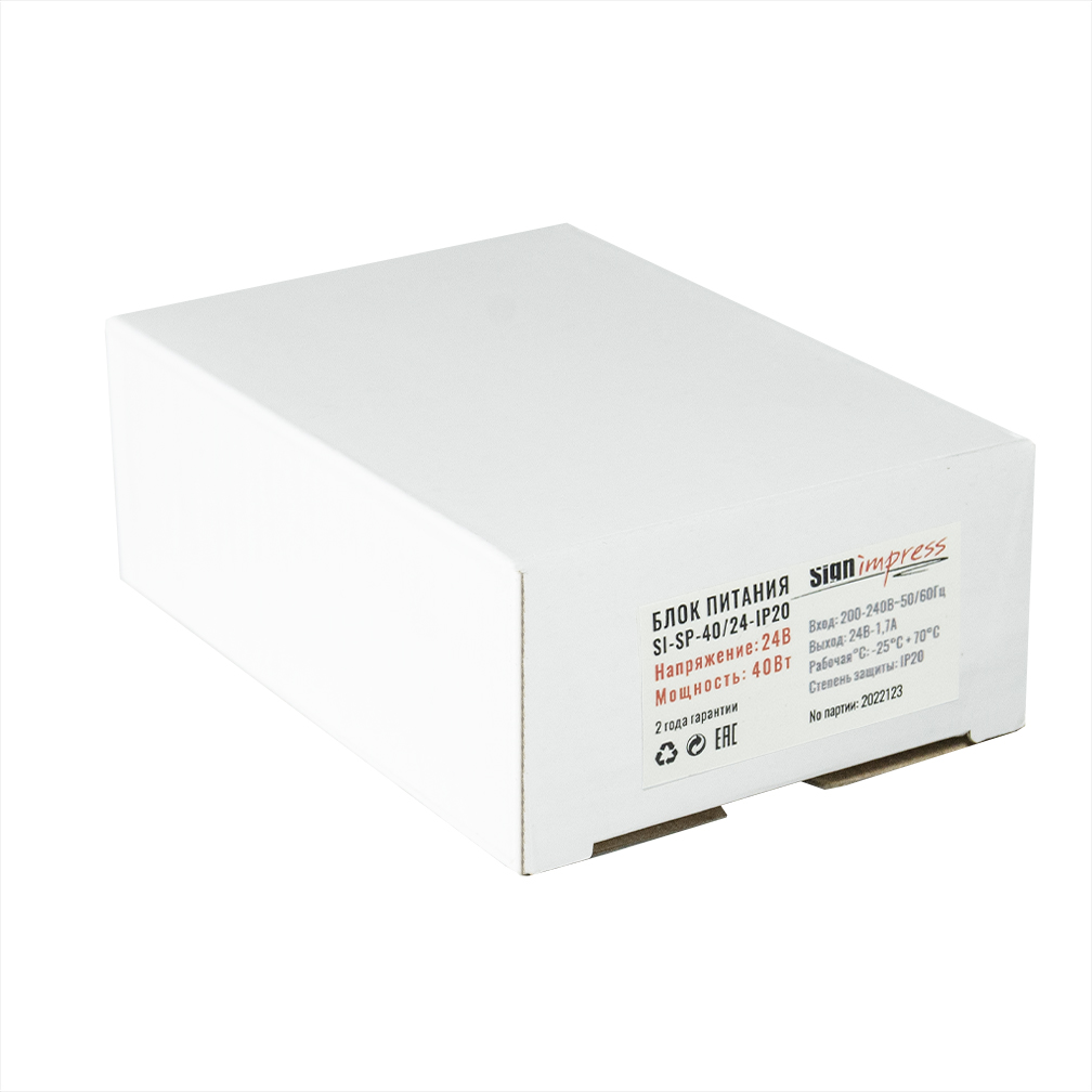 Блок питания 40Вт 24В IP20 SignImpress - ультратонкий блок питания, предназначен для преобразования переменного тока 220 вольт в постоянный ток 24 вольт. Используется для подключения светодиодных лент. Также может быть использован и в других сферах для подключения 24-вольтового оборудования. При выборе блока питания рекомендуется предусматривать 20-25% запас по мощности. Гарантия 2 года. Комплектация: блок питания.
