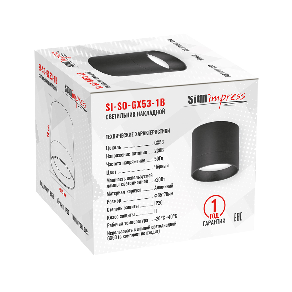 Светильник накладной под лампу GX53 SI-SO-GX53-1B Чёрный SignImpress. предназначен для освещения жилых и общественных помещений. Используется для основного освещения или акцентного зонирования. Светильник накладной обладает современным дизайном, подойдет для любого интерьера и стиля: классика, лофт, хайтек, минимализм, модерн. Рекомендуется использовать в комплекте с лампой светодиодной марки Signimpress (лампа в комплект не входит) .Комплектация: Светильник накладной – 1 шт.; Паспорт изделия и руководство по эксплуатации – 1 шт.; Упаковка с характеристиками – 1 шт.; Дюбель – 2шт.; Саморез – 2шт. Гарантия 1 год.