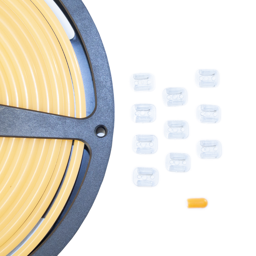 Неон гибкий силиконовый SMD2835 12В 100д/м 11Вт Оранжевый 6*12мм IP65 5м (1метр) SignImpress. Замечательно подходит для создания эффектного праздничного ландшафтного дизайна. С его помощью можно обозначить контуры всего здания или выделить элементы фасада, окантовки витрин, рекламных щитов, создаются надписи и более сложные композиции и формы. Благодаря его герметичности гибкий неон подходит для использования в любых климатических условиях, как в помещении, так и на улице. Кратность резки 1см. Гарантия 2 года. Бухта 5м. В комплект входит 1 цветная заглушка, 10 креплений для неона.