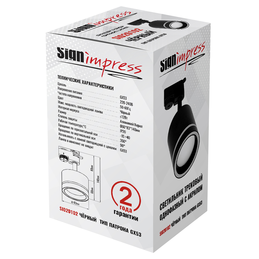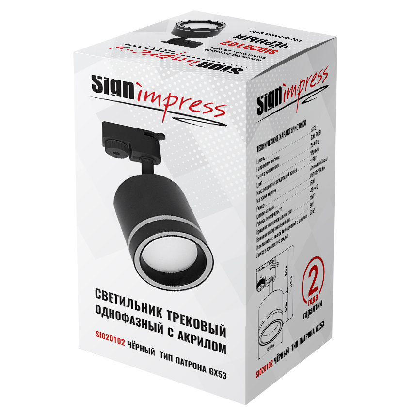 Светильник трековый однофазный наклонный под лампу GX53 с акрилом 020102 Чёрный SignImpress Светильник трековый предназначен для освещения жилых и общественных помещений, которые устанавливаются в трек (шинопровод) для натяжного и подвесного потолка. Светильник необходимо использовать с лампой светодиодной, цоколь GX53. Светильник накладной не содержит ртутьсодержащих веществ, поэтому он не представляет опасности в случае выхода из строя или разрушения. Светильник трековый имеет функцию поворота и/или наклона. Комплектация: трековый светильник - 1шт.; Паспорт изделия и руководство к эксплуатации - 1шт.; Упаковка с харрактеристиками - 1шт. Лампа в комплект не входит. Гарантия 2 года.