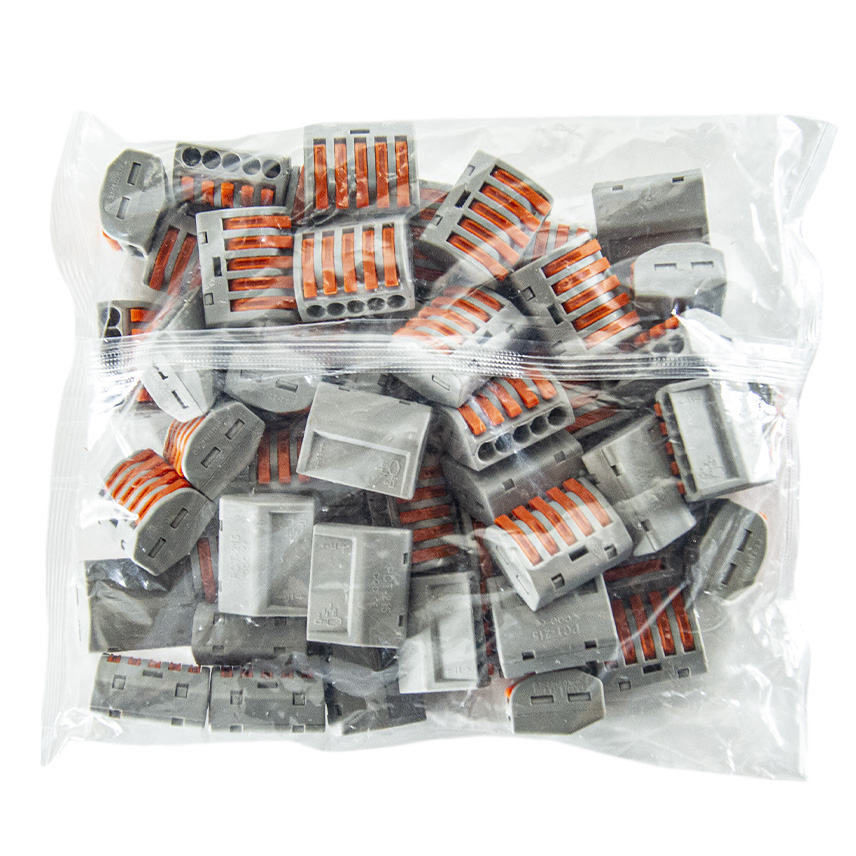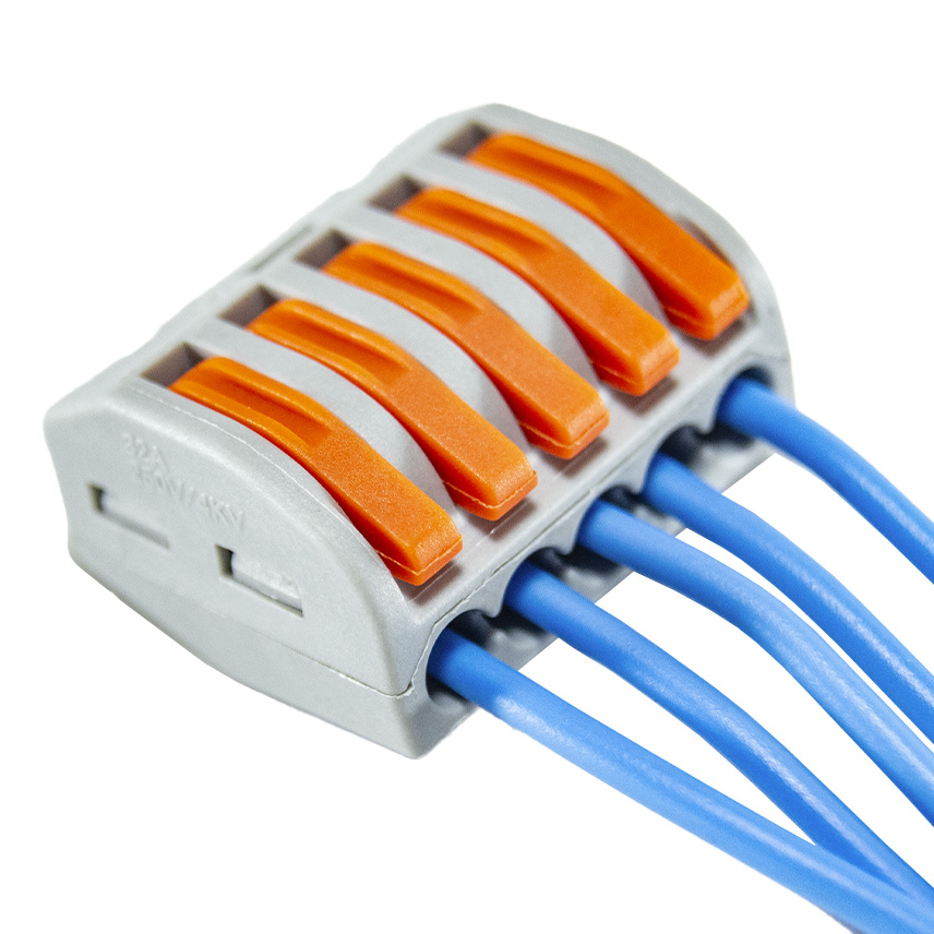Клемма соединительная с рычагами SI-TС5 5 входов - 1 шт. (50шт.) SignImpress является рычажной и в ней применяется пружинное соединение, что обеспечивает надежность контакта как одножильных, так и многожильных медных проводников с широким диапазоном сечений. Клеммы отличаются высоким качеством материалов и просты в использовании, поэтому чаще всего применяются для подключения проводов в бытовых условиях. Комплектация: продается упаковкой - 50 шт.