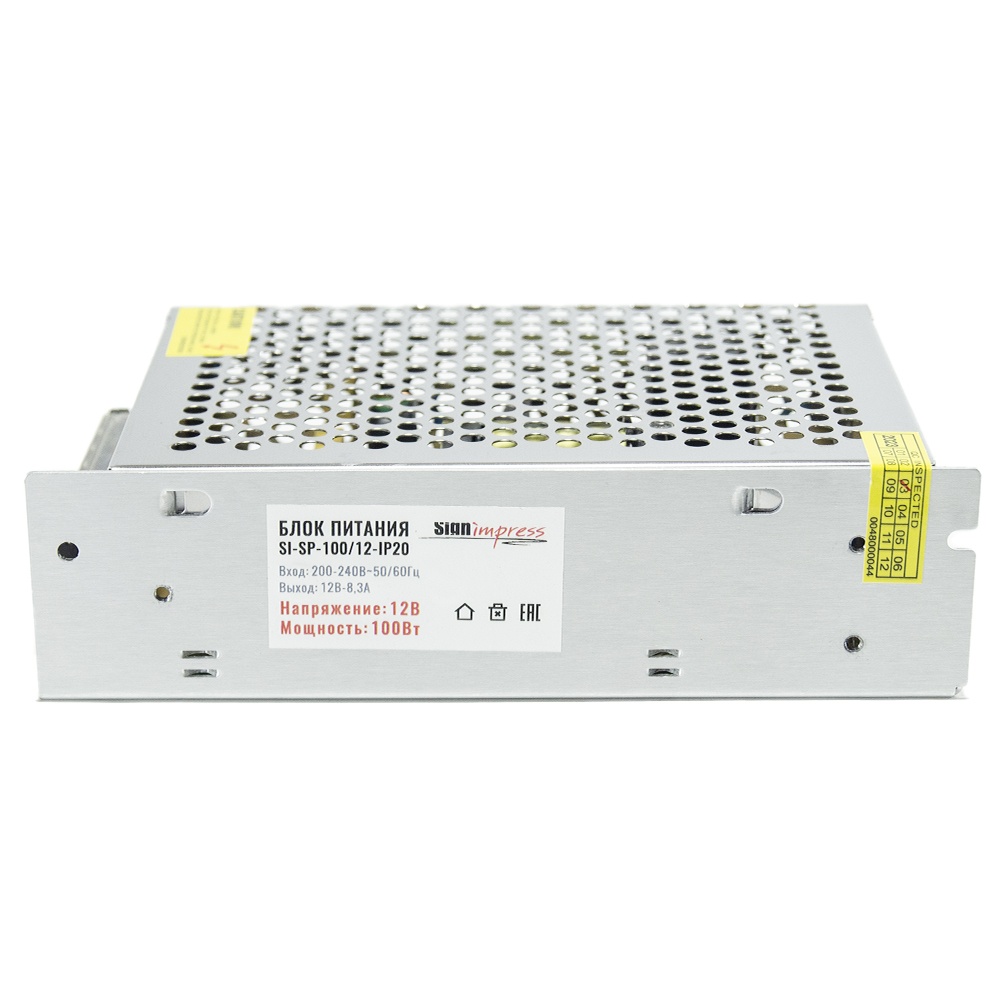 Блок питания 100W 12V IP20 DX SignImpress предназначен для преобразования переменного тока 220 вольт в постоянный ток 12 вольт. Имеет открытый невлагозащищенный корпус (степень защиты IP20), предназначен для установки в сухих местах, в помещениях или внутри изделий. Используется для подключения светодиодных лент. Также может быть использован и в других сферах для подключения 12-вольтового оборудования. При выборе блока питания рекомендуется предусматривать 20-25% запас по мощности. Гарантия 2 года.