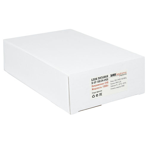 Блок питания 100W 24V IP20 DX SignImpress предназначен для преобразования переменного тока 220 вольт в постоянный ток 24 вольт. Имеет открытый невлагозащищенный корпус (степень защиты IP20), предназначен для установки в сухих местах, в помещениях или внутри изделий. В рекламной сфере используется для подключения светодиодных лент, модулей, кластеров, светодиодных линеек, пикселей и т.д. Также может быть использован и в других сферах для подключения 24-ти вольтового оборудования. При выборе блока питания рекомендуется предусматривать 20-25% запас по мощности. Гарантия 2 года.