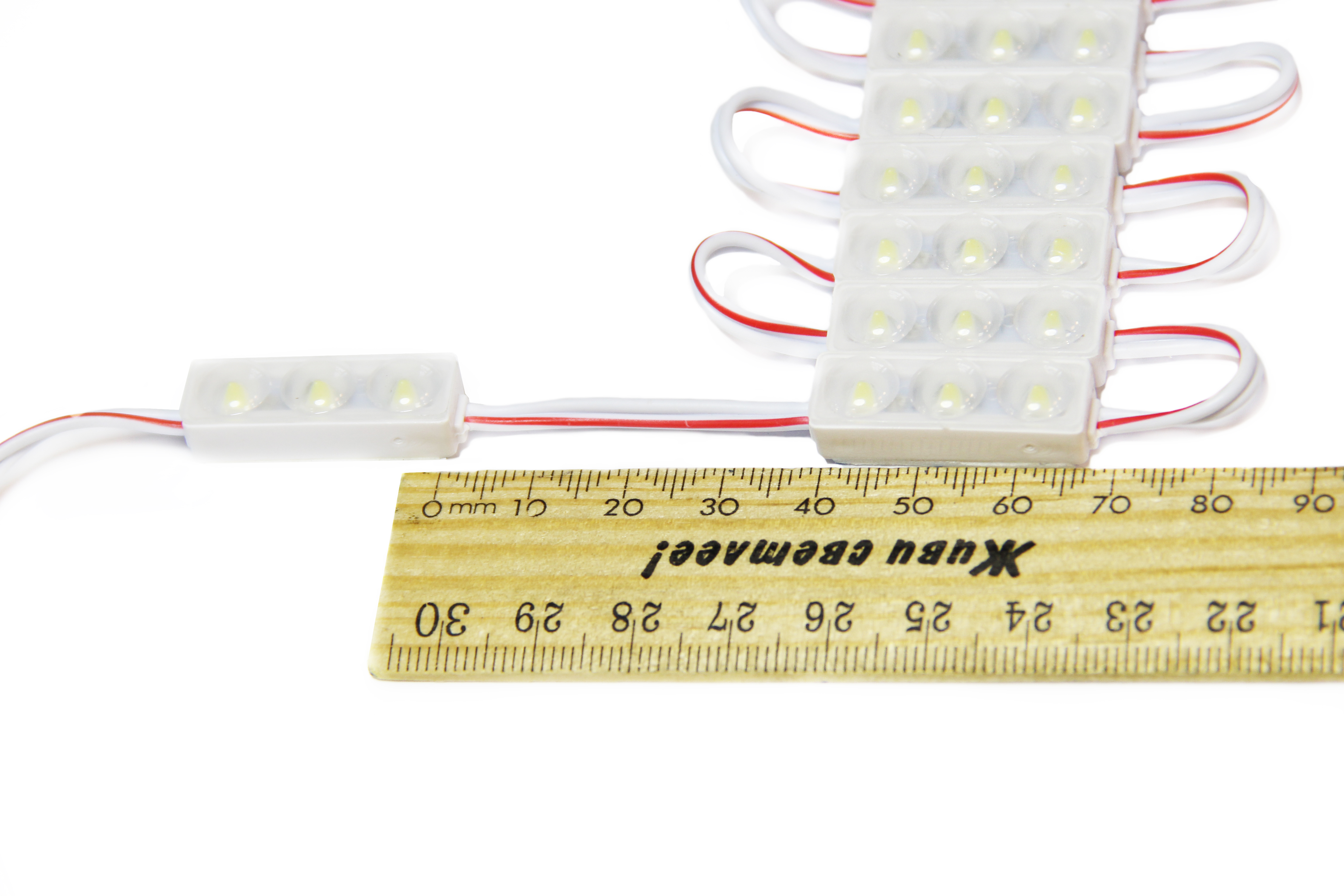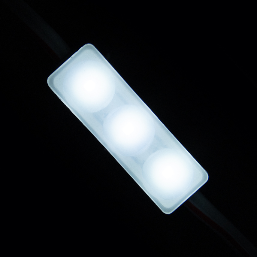 Модуль светодиодный 3 SMD mini 2835 0,6W 50lm 6000К-6500К (с линзой 170) - 1шт. SignImpress применяется в наружной рекламе для декоративной интерьерной и архитектурной подсветки, для освещения объемных букв, световых коробов, рекламных надписей, контурных подсветок и т.д. Светодиодная модульная система состоит из герметичных модулей соединенных между собой проводами. Плюсы применения: Простой электромонтаж и легкое крепление к любой поверхности; Возможность демонтировать светодиодную вывеску и собрать новую, используя те же светодиоды; Пожаробезопасны, т.к. светодиоды работают от 12В; Никакого падения яркости в зимний период, т.к. электрическая энергия переходит в световую; Замена светодиодного элемента производится просто и быстро; Большой ресурс работы и длительная гарантия от производителя;