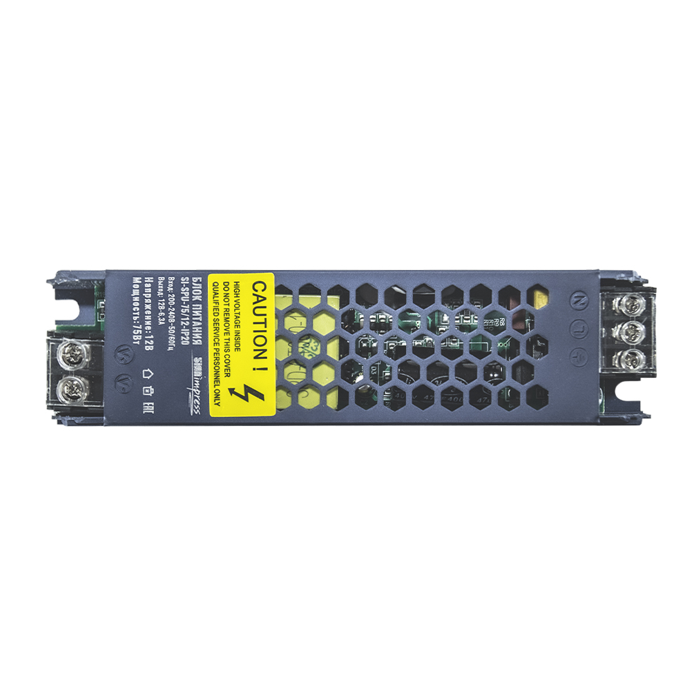 Блок питания ультратонкий 75Вт 12В IP20 SignImpress предназначен для преобразования переменного тока 220 вольт в постоянный ток 12 вольт. Имеет открытый невлагозащищенный корпус (степень защиты IP20), предназначен для установки в сухих местах, в помещениях или внутри изделий. В рекламной сфере используется для подключения светодиодных лент, модулей, кластеров, светодиодных линеек, пикселей и т.д. Также может быть использован и в других сферах для подключения 12-ти вольтового оборудования. При выборе блока питания рекомендуется предусматривать 20-25% запас по мощности. Гарантия 2 года. Комплектация: блок питания.