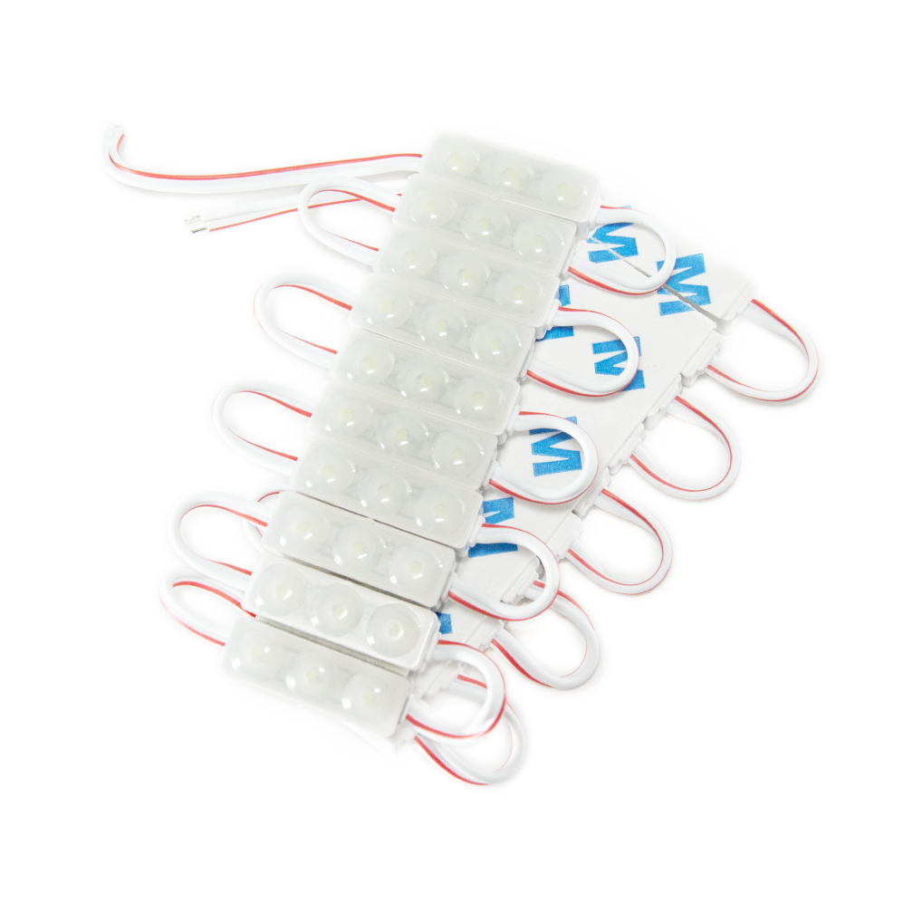 Модуль светодиодный 3 SMD mini 2835 0,6Вт 50Лм 10000К (с линзой 170) SignImpress применяется в наружной рекламе для декоративной интерьерной и архитектурной подсветки, для освещения объемных букв, световых коробов, рекламных надписей, контурных подсветок и т.д. Светодиодная модульная система состоит из герметичных модулей соединенных между собой проводами. Плюсы применения: простой электромонтаж и легкое крепление к любой поверхности; возможность демонтировать светодиодную вывеску и собрать новую, используя те же светодиоды; пожаробезопасны, т.к. светодиоды работают от 12В; никакого падения яркости в зимний период, т.к. электрическая энергия переходит в световую; замена светодиодного элемента производится просто и быстро; большой ресурс работы. Гарантия 2 года.