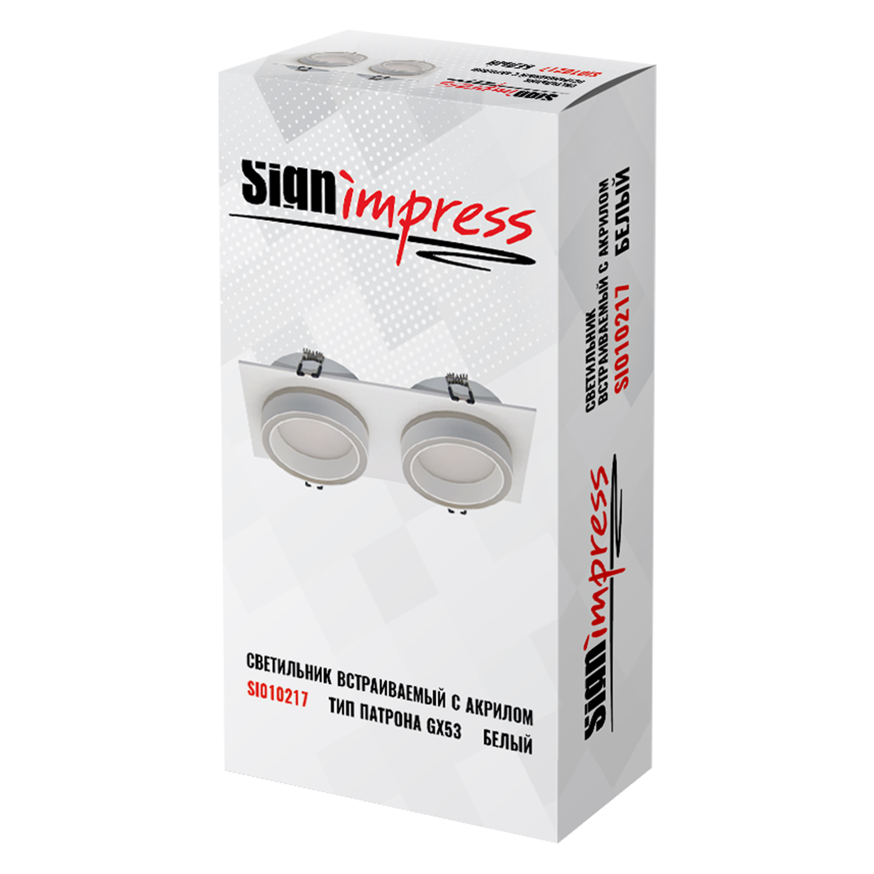 Светильник встраиваемый GX53 с акрилом прямоугольный 010217 Белый SignImpress предназначен для использования с лампой светодиодной, цоколь GX53, для освещения жилых и общественных помещений. Подходит для подвесных конструкций. Комплектация: Светильник встраиваемый – 1 шт.; Паспорт изделия и руководство по эксплуатации – 1 шт.; Упаковка с характеристиками – 1 шт. Гарантия 2 года.