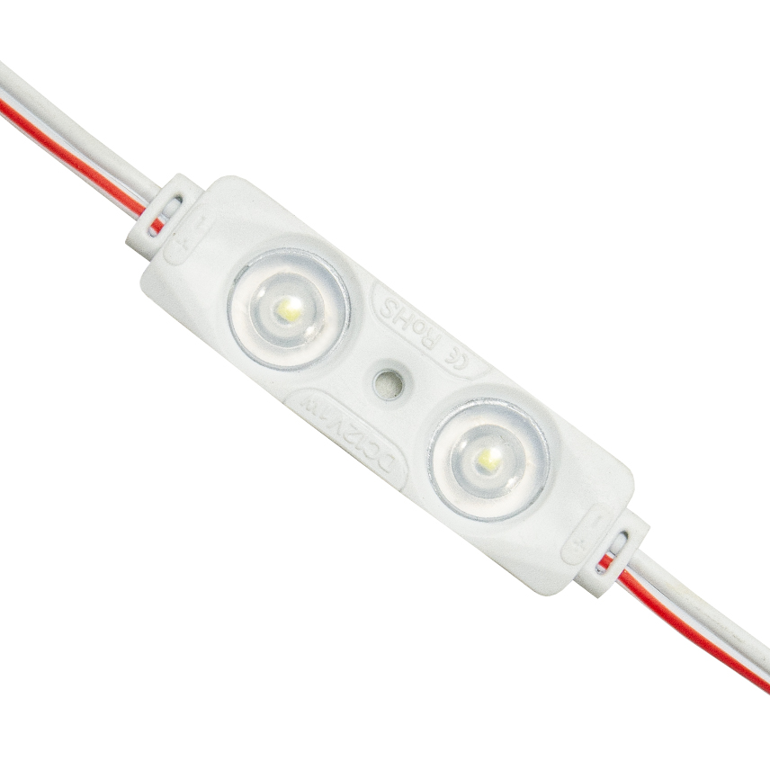 Модуль светодиодный 2 SMD 2835, 1W, 70lm, 6000-6500K (с линзой 160) 3M SignImpress применяется в наружной рекламе для декоративной интерьерной и архитектурной подсветки, для освещения объемных букв, световых коробов, рекламных надписей, контурных подсветок и т.д. Светодиодная модульная система состоит из герметичных модулей соединенных между собой проводами. Плюсы применения: простой электромонтаж и легкое крепление к любой поверхности; возможность демонтировать светодиодную вывеску и собрать новую, используя те же светодиоды; пожаробезопасны, т.к. светодиоды работают от 12В; никакого падения яркости в зимний период, т.к. электрическая энергия переходит в световую; замена светодиодного элемента производится просто и быстро; большой ресурс работы и длительная гарантия от производителя.