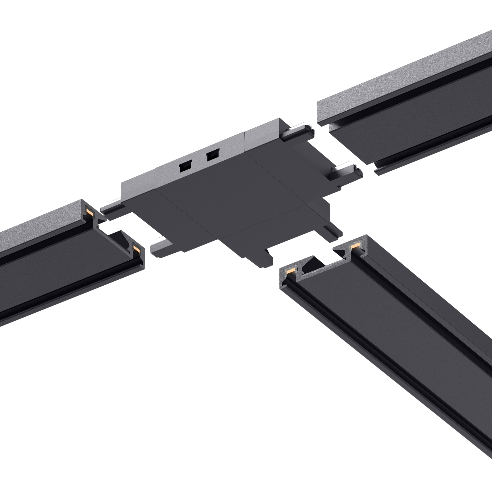 Шинопровод однофазный накладной Ultra Thin 24/48В для трековых магнитных светильников Чёрный 2м SignImpress Шинопровод магнитный представляет собой алюминиевый профиль в виде швеллера. Внутри профиля проходят токоведущие медные шины, заключенные в пластиковый корпус. Пластик помогает зафиксировать токоведущую шину внутри трека, а также выступает в качестве изолятора. Такая конструкция обеспечивает передачу и распределение электроэнергии электричества ко всем элементам цепи. Трековая система не нуждается в дорогостоящем обслуживании.