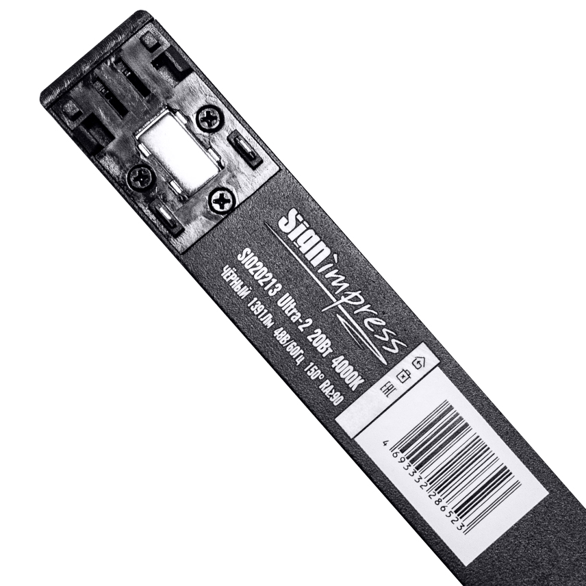 Светильник трековый однофазный магнитный линейный Ultra-2 48В 20Вт 4000К Чёрный 3года SignImpress предназначен для освещения жилых и общественных помещений, который устанавливается в трек (шинопровод) для натяжного или подвесного потолока.