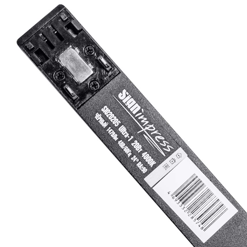 Светильник трековый однофазный магнитный линейный Ultra-1 48В 20Вт 4000К Чёрный 3года SignImpress предназначен для освещения жилых и общественных помещений, который устанавливается в трек (шинопровод) для натяжного или подвесного потолока.