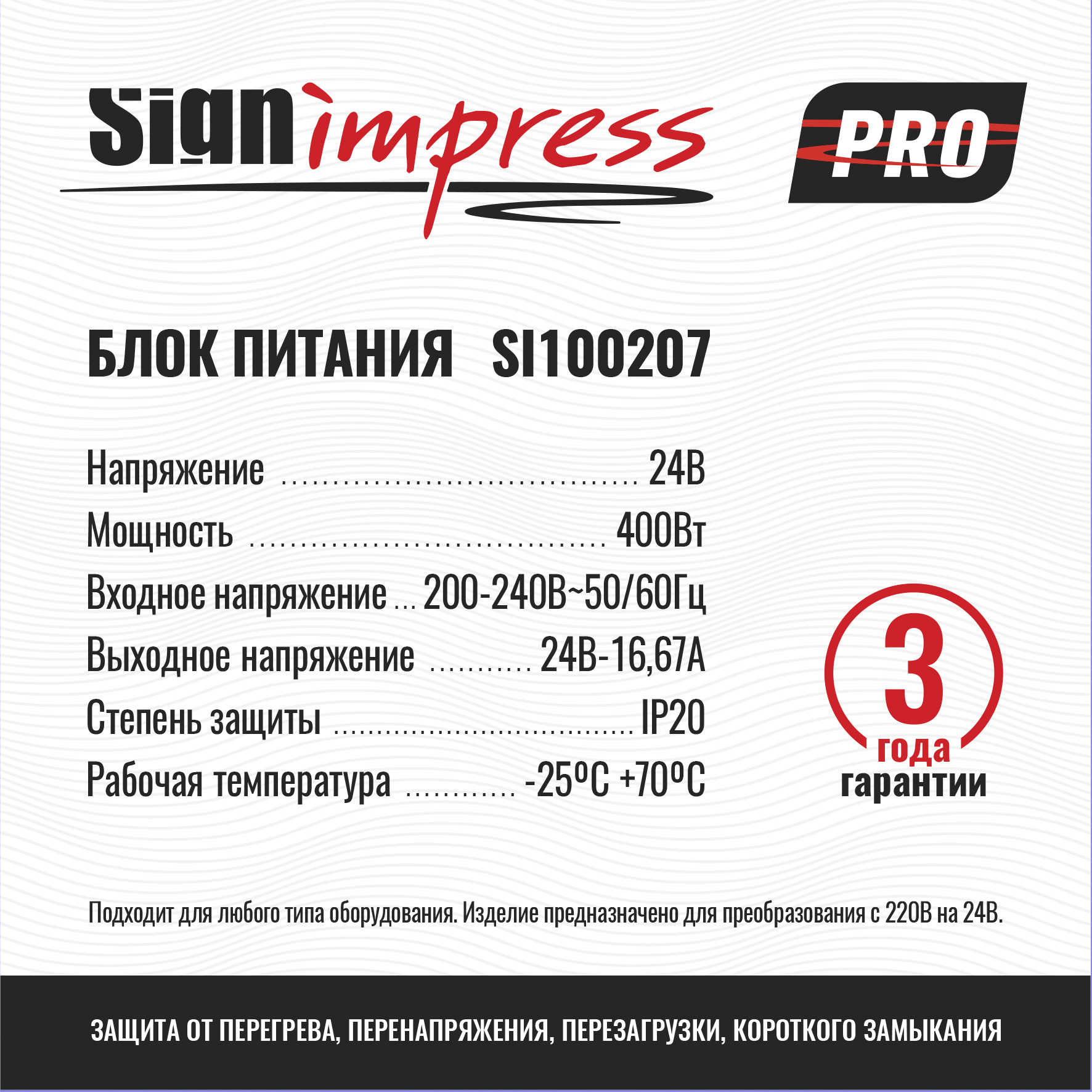 Блок питания PRO ультратонкий 400Вт 24В IP20 SignImpress является стабилизированным источником. Используется для преобразования сети переменного тока в постоянный. Изделие предназначено для внутреннего использования.