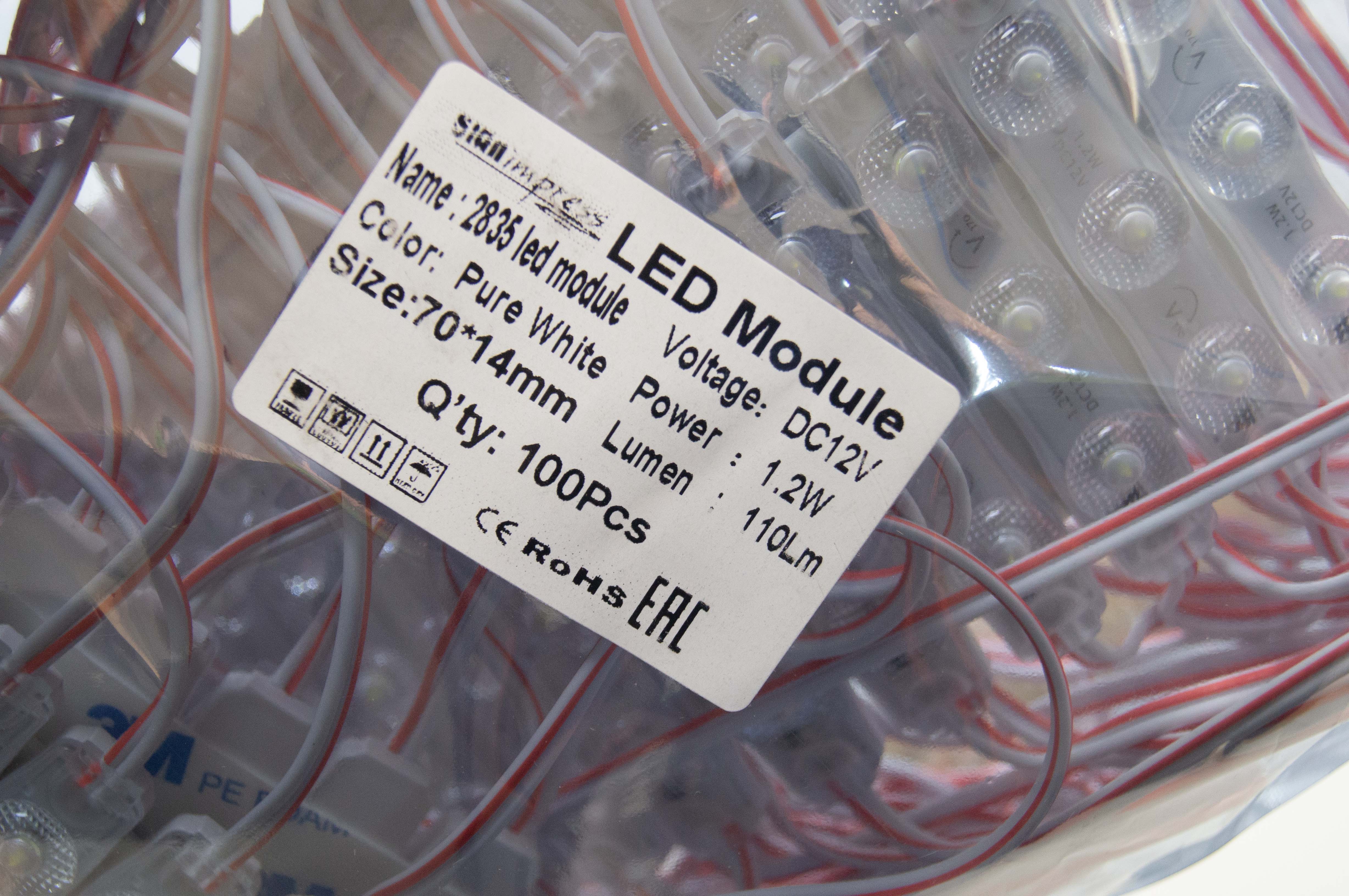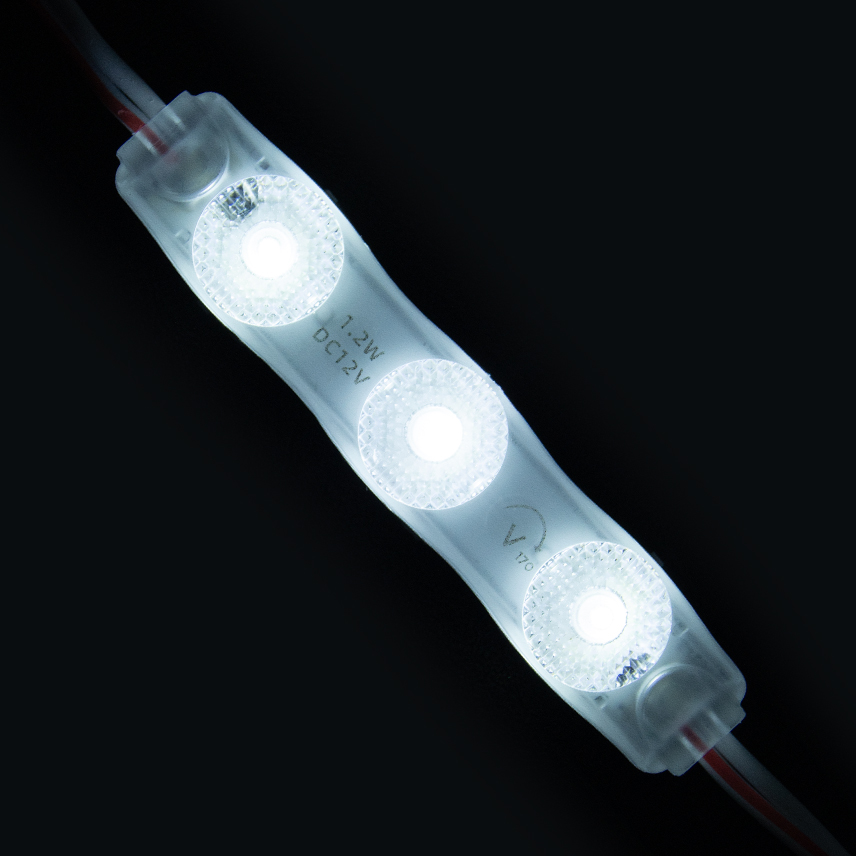Модуль светодиодный 3 SMD 2835 1,2W 110lm 6000К-6500К (с линзой 170) 3M - 1шт. SignImpress применяется в наружной рекламе для декоративной интерьерной и архитектурной подсветки, для освещения объемных букв, световых коробов, рекламных надписей, контурных подсветок и т.д. Светодиодная модульная система состоит из герметичных модулей соединенных между собой проводами. Плюсы применения: простой электромонтаж и легкое крепление к любой поверхности; возможность демонтировать светодиодную вывеску и собрать новую, используя те же светодиоды; пожаробезопасны, т.к. светодиоды работают от 12В; никакого падения яркости в зимний период, т.к. электрическая энергия переходит в световую; замена светодиодного элемента производится просто и быстро; большой ресурс работы и длительная гарантия от производителя.