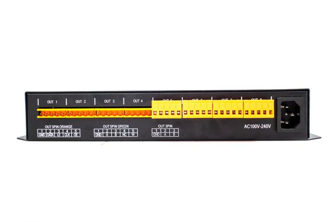 ОСНОВНЫЕ СВЕДЕНИЯ: 1) Поддержка SPI и DMX протоколов. 2) 8 выходных портов. SPI: 4096 пикселей (8*512 пикселей), DMX: 1360 пикселя (8*170 пикселей). 3) Передача 32-х градаций яркости в каждом канале, что позволяет получить 65 536 различных цветов и оттенков, способных в точности отобразить все детали изображения.