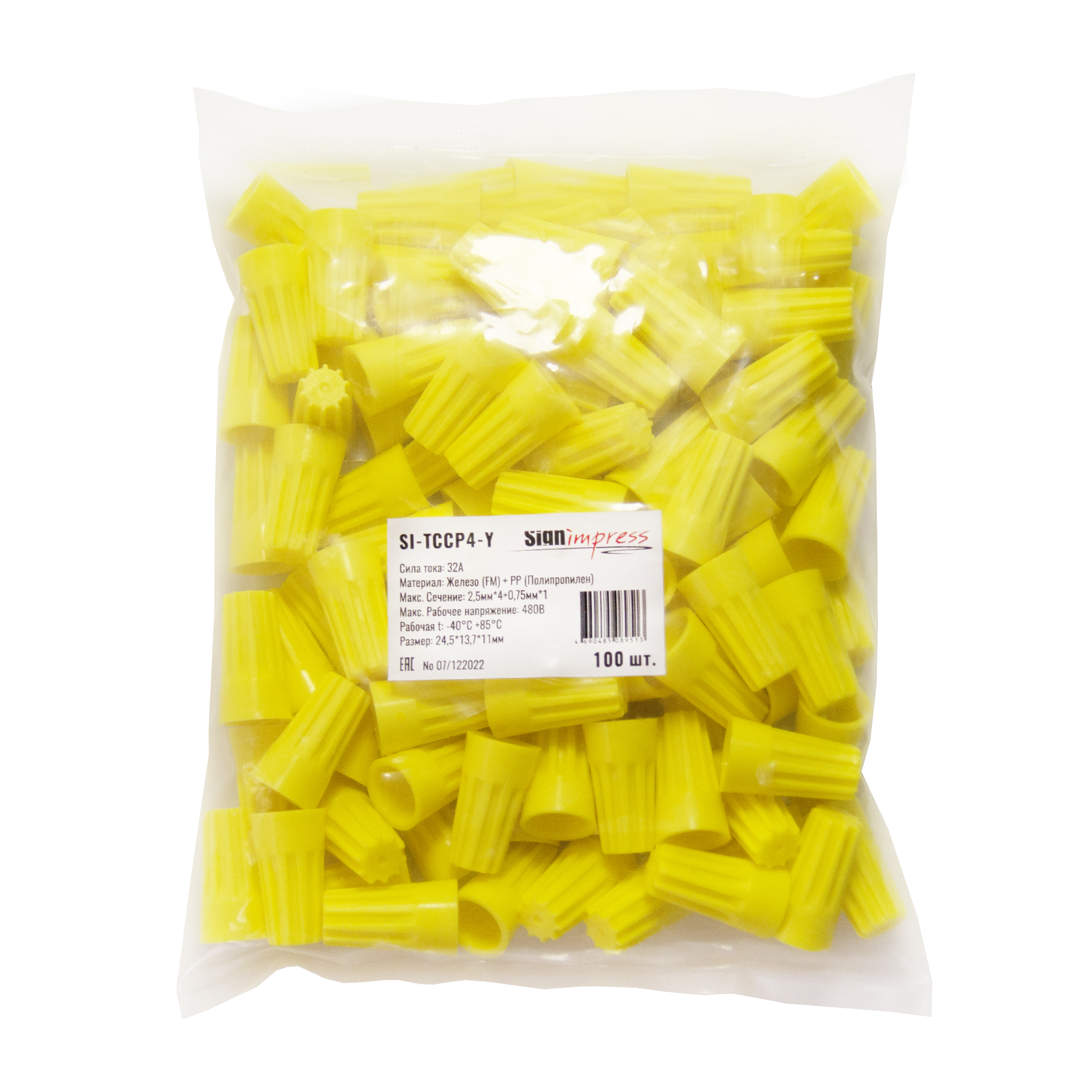 Зажим соединительный изолирующий SI-TCCP4-Y Жёлтый (100шт.) SignImpress