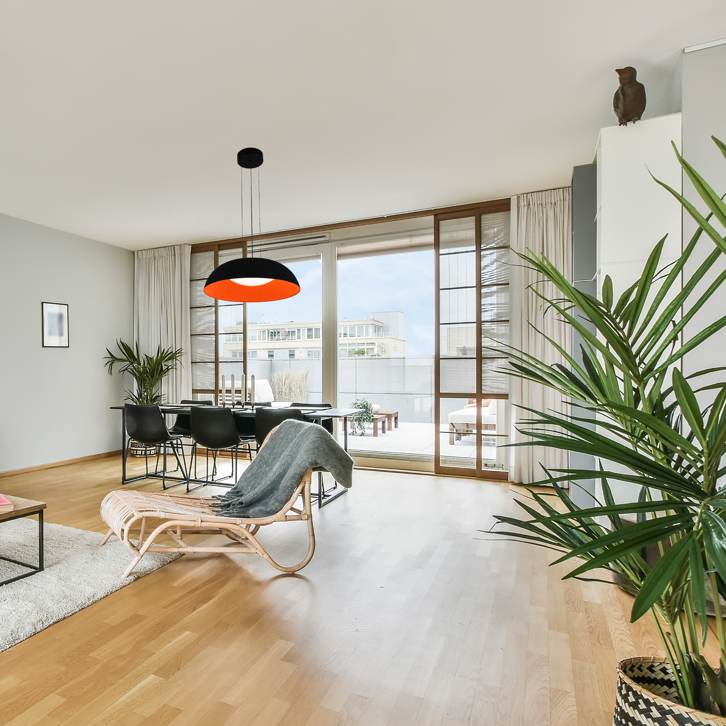 Светильник подвесной светодиодный 24 Вт 4320 Лм Чёрный/Оранж Signimpress обладает режимом ССТ и эффектом «памяти». Предназначена для освещения жилых и/или общественных помещений. Подходит для подвесных конструкций. В одном помещении необходимо монтировать изделия из одной партии. Комплектация: 1. Люстра потолочная со встроенным драйвером и тросом – 1 шт. 2. Трос (количество зависит от модели изделия): 1-3 шт. 3. Комплектующие для монтажа: дюбель – 2 шт., саморез – 2 шт., крепление для провода – 1 шт., крепежный винт – 2 шт., клеммная колодка – 1 шт., планка – 1 шт. 4. Паспорт изделия и руководство по эксплуатации – 1 шт.5. Упаковка с характеристиками – 1 шт. Гарантия 2 года