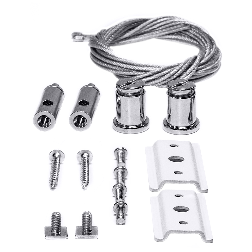 Тросовый подвес для шинопровода магнитного Ultra Белый 1,5м 1комп. SignImpress Предназначен для шинопровода трековой системы. Комплектация: 1) квадратные гайки: 9*9/M4 мм - 2 шт. 2) крепежная деталь 40*23 мм - 2 шт. 3) винты: 12 * M4 мм - 4 шт. 4) дюбель 5*25 мм - 2 шт. 5) верхнее крепление троса -2 шт. + винтовая крышка 15*18 мм - 2шт. 6) винты 3*30 мм - 2 шт. 7) регулятор длины троса 9*31 мм - 2 шт. 8) стальной трос 1,5*1500 мм - 2 шт